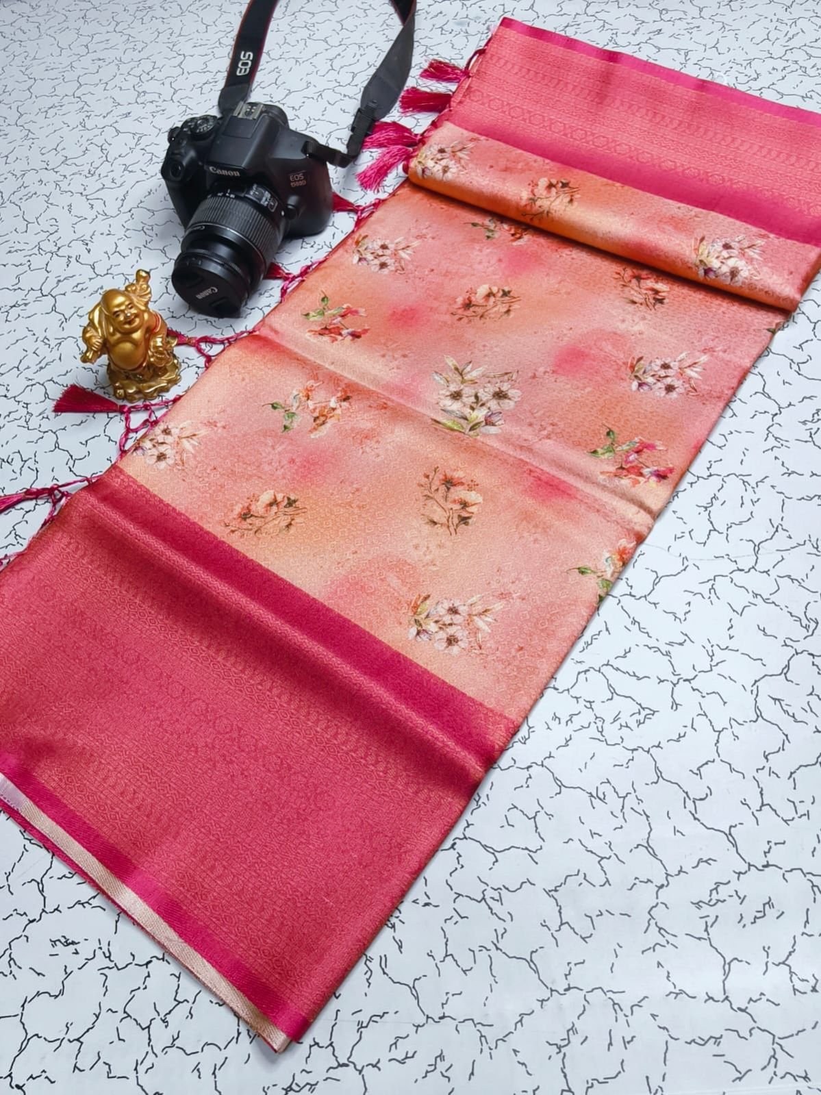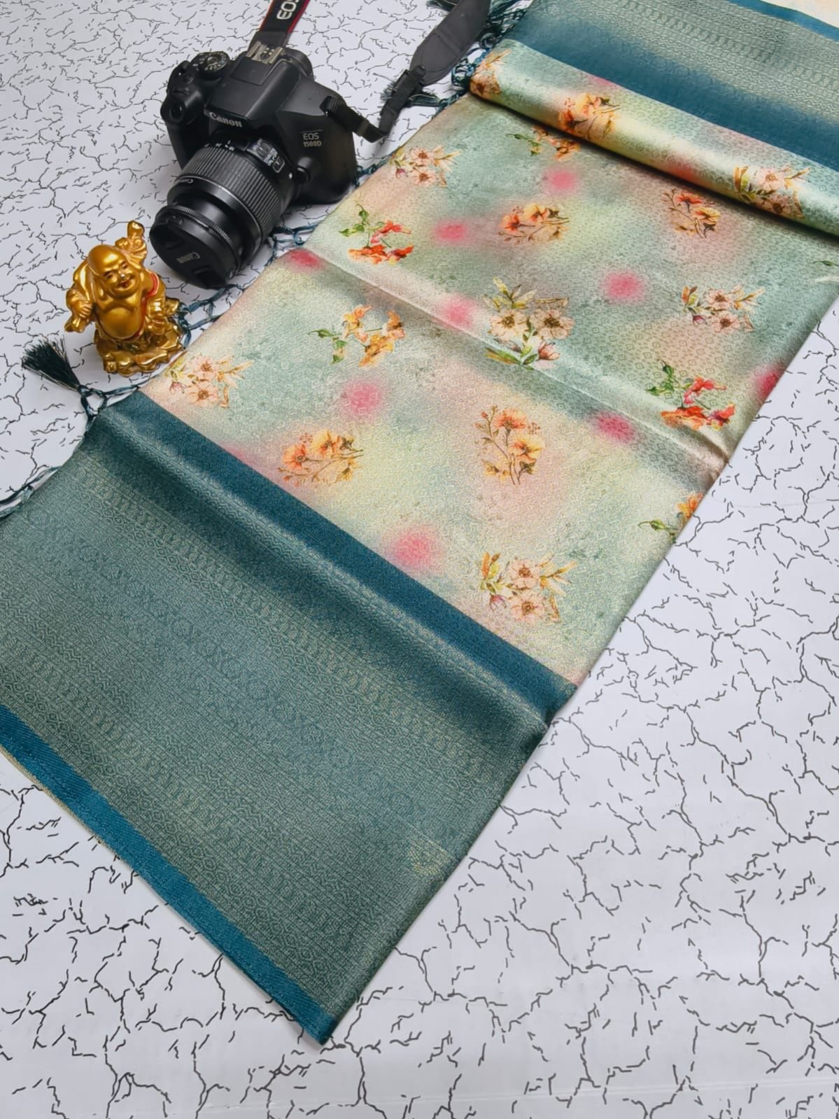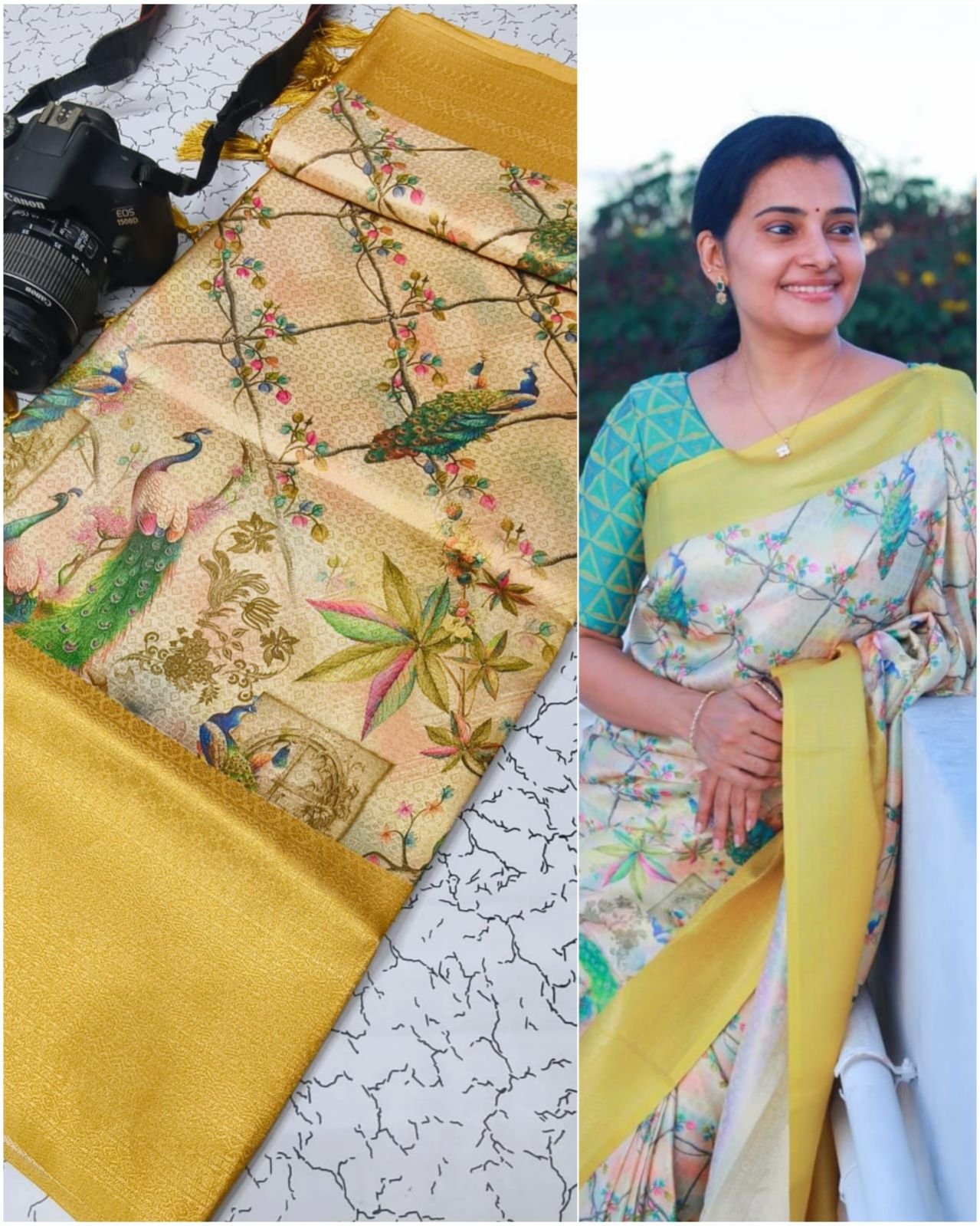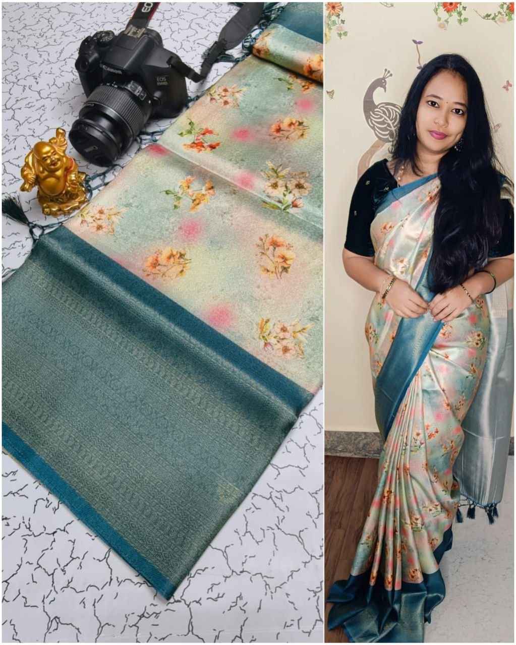 *PREMIUM DIGITAL FLORAL SOFTY* *SOFT SILK FABRIC WITH FLORAL DIGITAL PRINT on COPPER JARI weaving & CONTRAST BORDER N RICH GRAND PALLU* *HEAVY CONTRAST JECOD BLOUSE* *SINGLE SAREE ????????????????????????????????