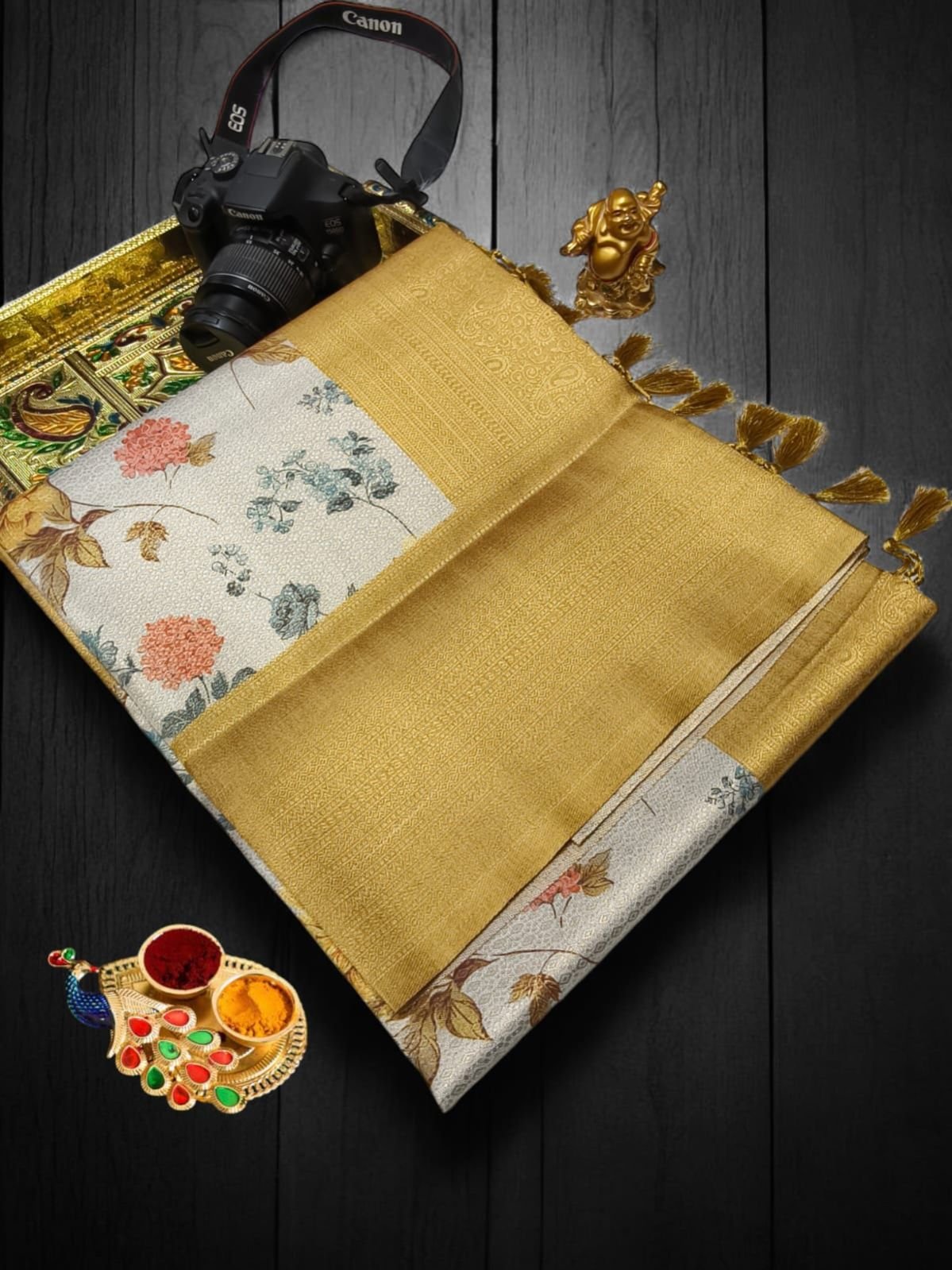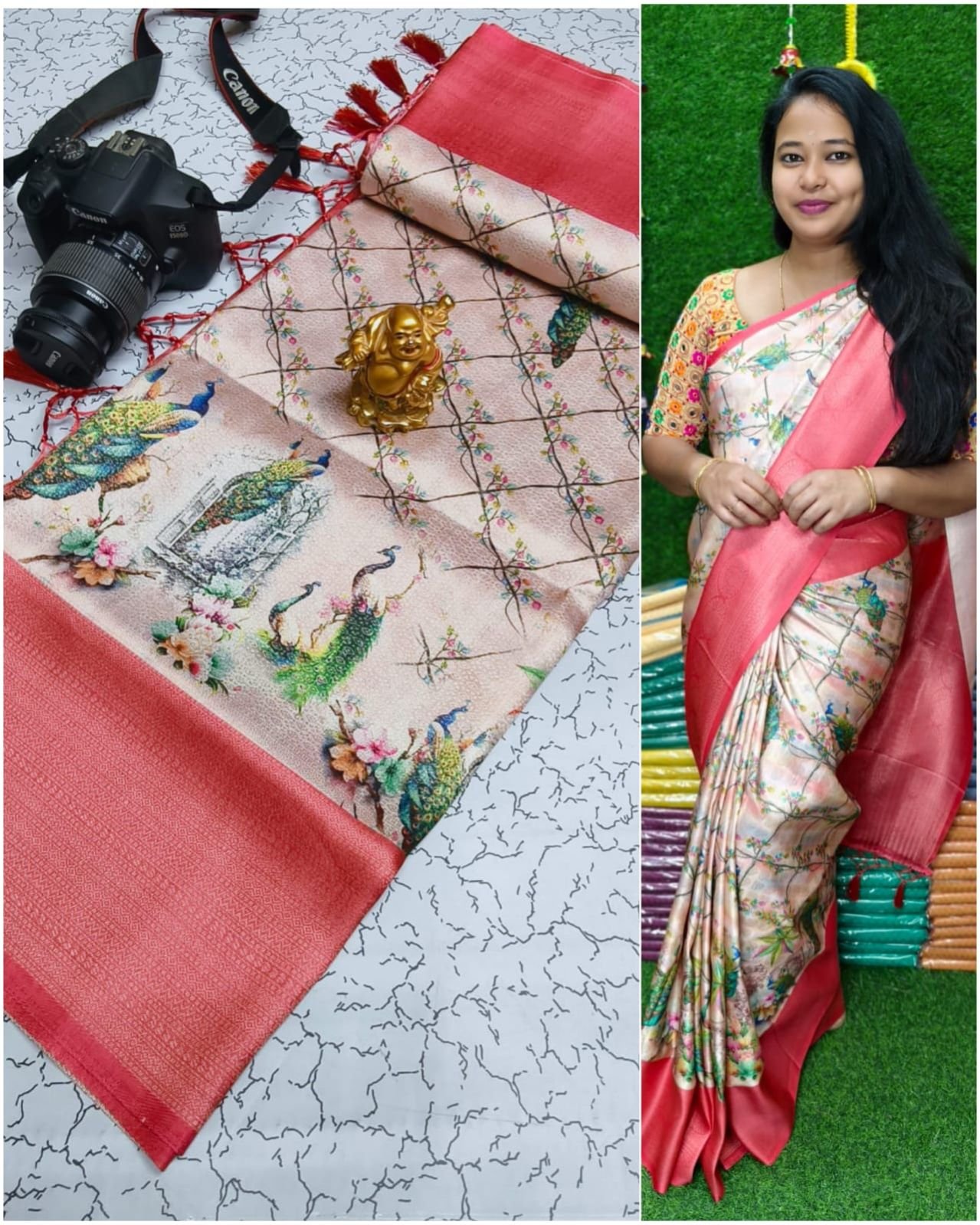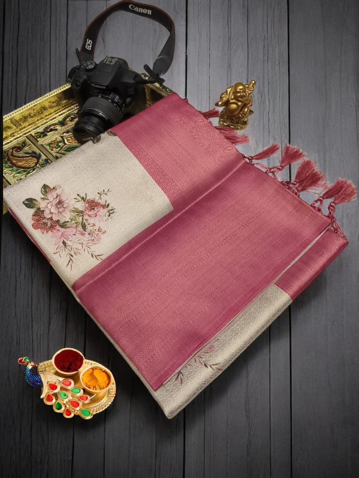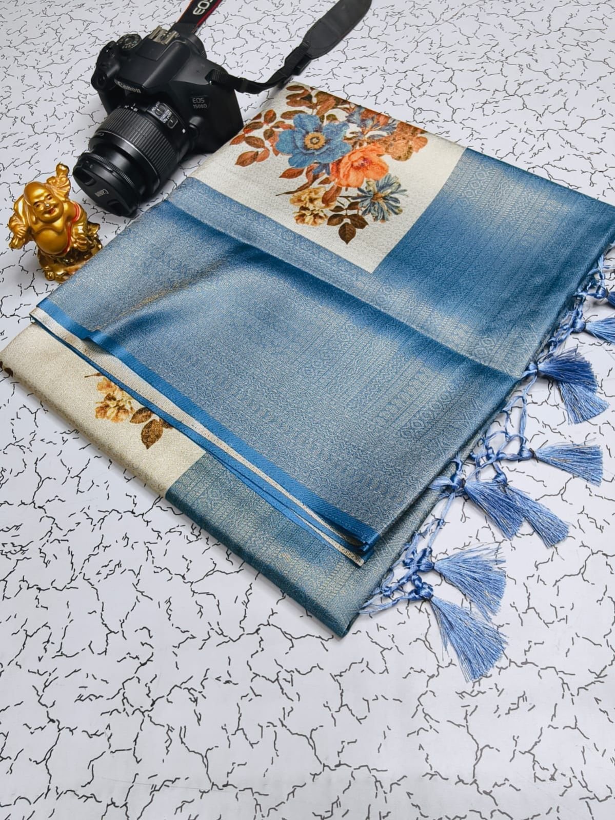 *PREMIUM DIGITAL FLORAL SOFTY* *SOFT SILK FABRIC WITH FLORAL DIGITAL PRINT on COPPER JARI weaving & CONTRAST BORDER N RICH GRAND PALLU* *HEAVY CONTRAST JECOD BLOUSE* *SINGLE SAREE ????????????????????????????????